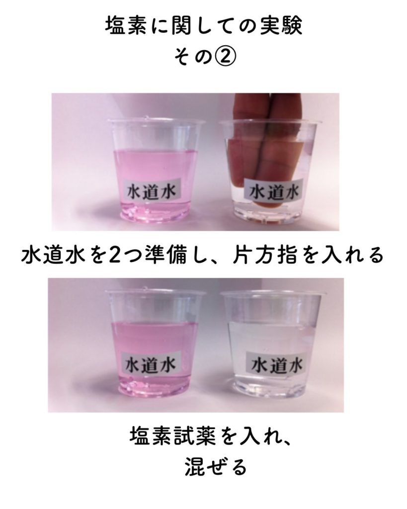 水道水に塩素試薬を入れるとピンク色に変化